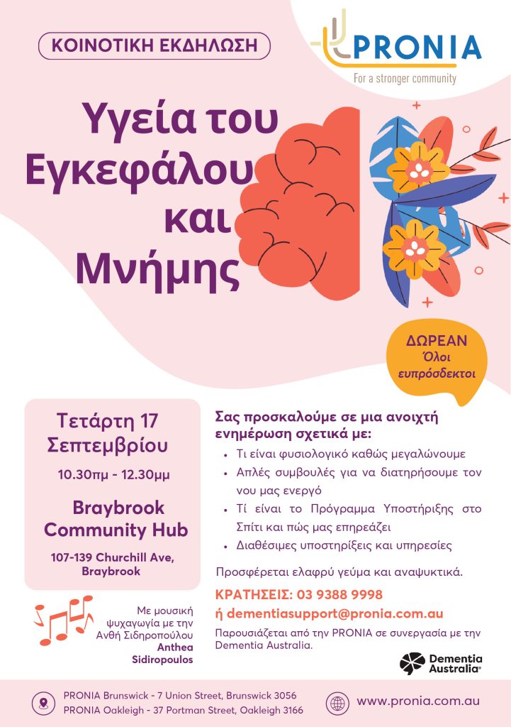Community Event WhenWednesday 17th September Time 10:30am - 12:30pm Where Braybrook Community Hub. 107-139 Churchille Ave, Braybrook Memory and Brain health Book Event